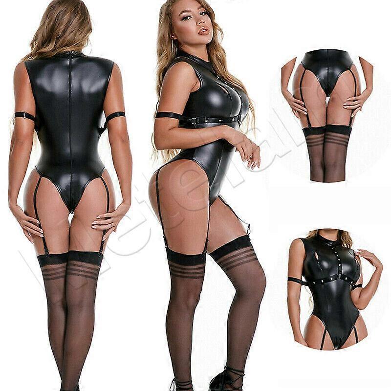 Condition:New with tags: This item is brand new and has never been worn. It still has the original tags and/or ...<br>Pattern:Solid<br>Closure:Zip<br>Neckline:Crew Neck<br>Number of Pieces:3 Piece<br>Occasion:Party/Cocktail<br>Material:Faux Leather, Leather<br>MPN:Does Not Apply<br>Set Includes:Leotard, Stockings<br>Accents:Zipper<br>Vintage:No<br>Brand:Unbranded<br>Fit:Regular<br>Size Type:Regular<br>Department:Women<br>Type:Outfit/Set<br>Leg Style:Skinny<br>Style:Catsuit<br>Theme:Clubwear, Shiny