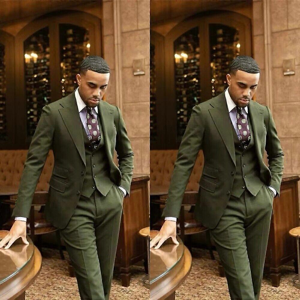 Olive Men Suit Formal Tuxedos Wedding Groom Party Business Groom Men Blazer