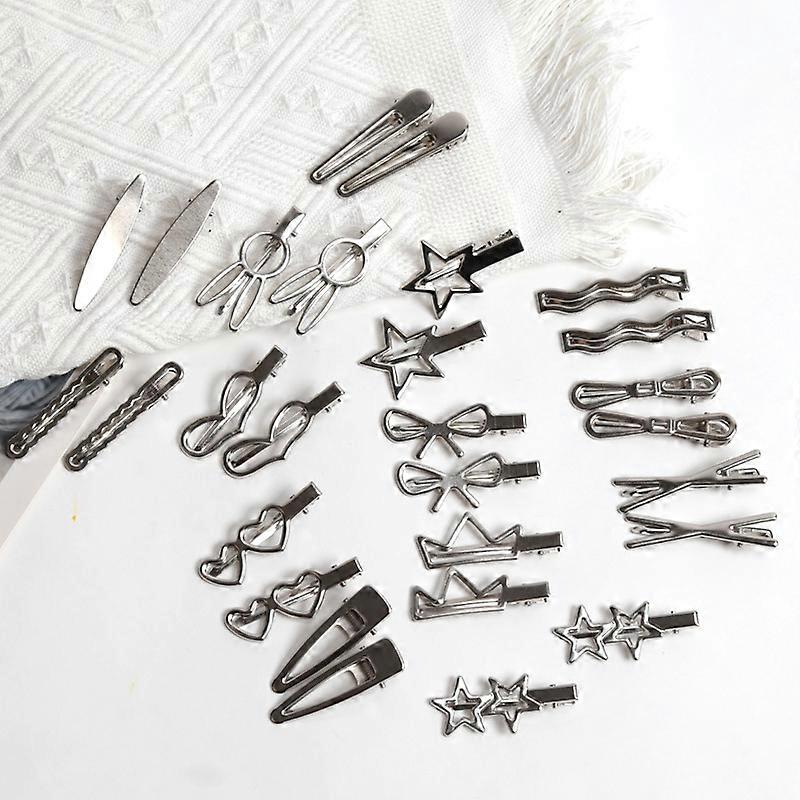 28Pcs/Set Y2K Silver Color Hairp for Women Girls Star Hair Clip Multiple Styles Seamless Duckbill Clip Girls Hair Accessoires