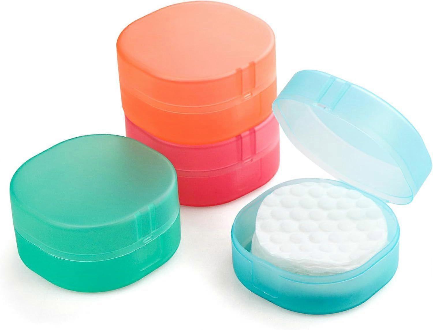 Set of 4 round plastic cotton pad holders - Assorted colors - Portable - For makeup removal - Cotton beads (blue, pink, orange, green)