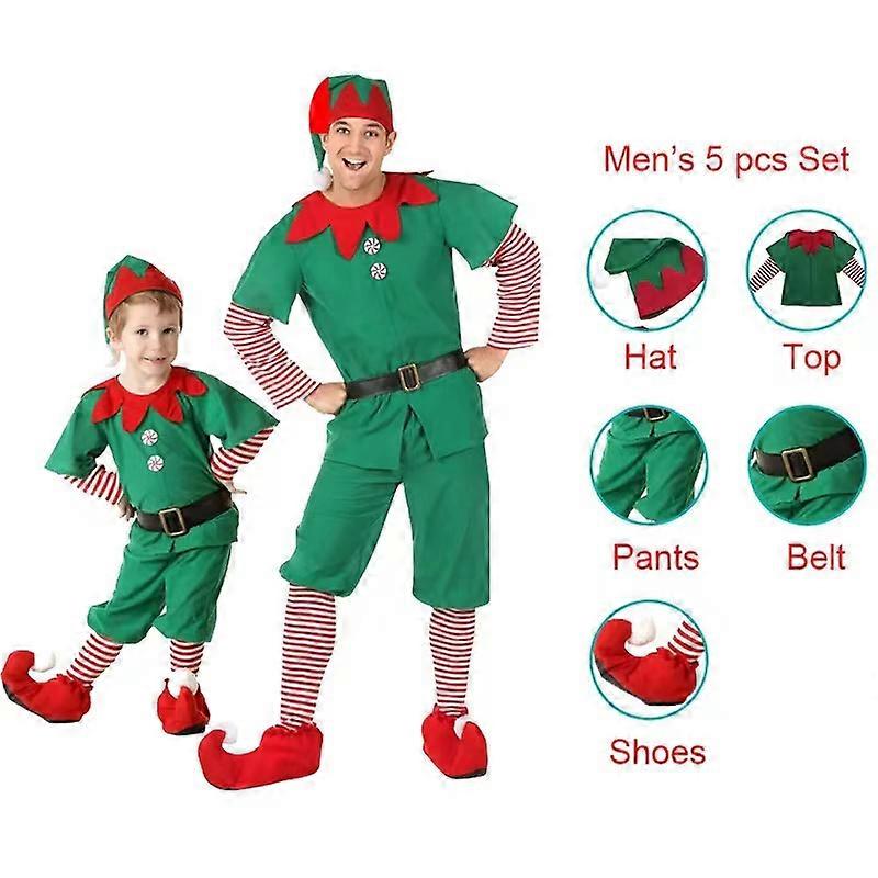 Christmas Santa Claus Costume Adult Kids Family Green Elf Cosplay Outfits Carnival Party New Year performance Xmas Dress Gift