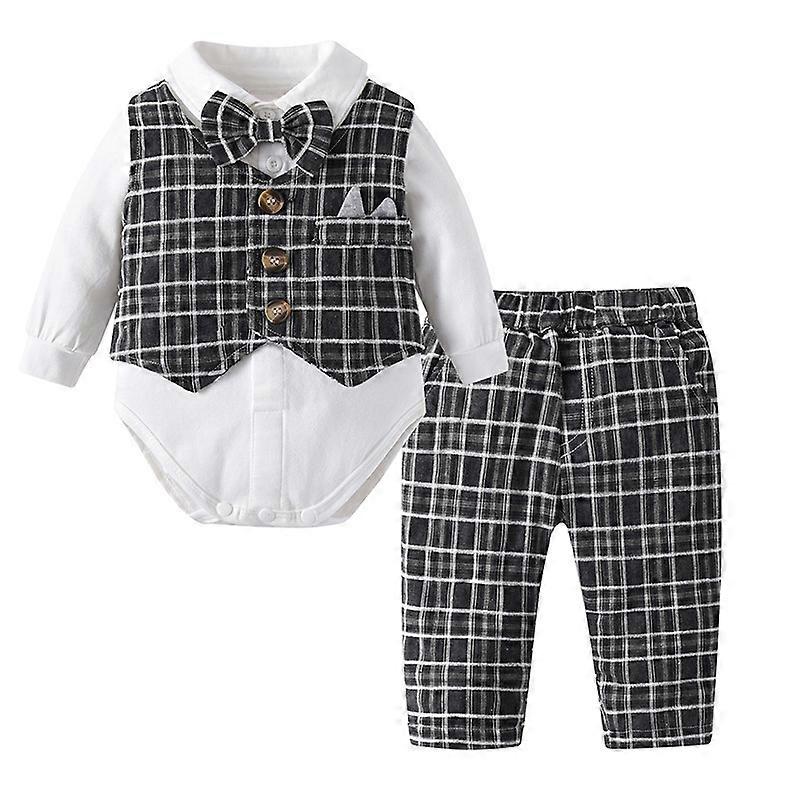 Baby Toddler Boy Gentleman Suits Formal Newborn Long Sleeve Baby Boy's Tuxedo Outfit Suit+ Suspender Pants + Bowtie + Beret Hat