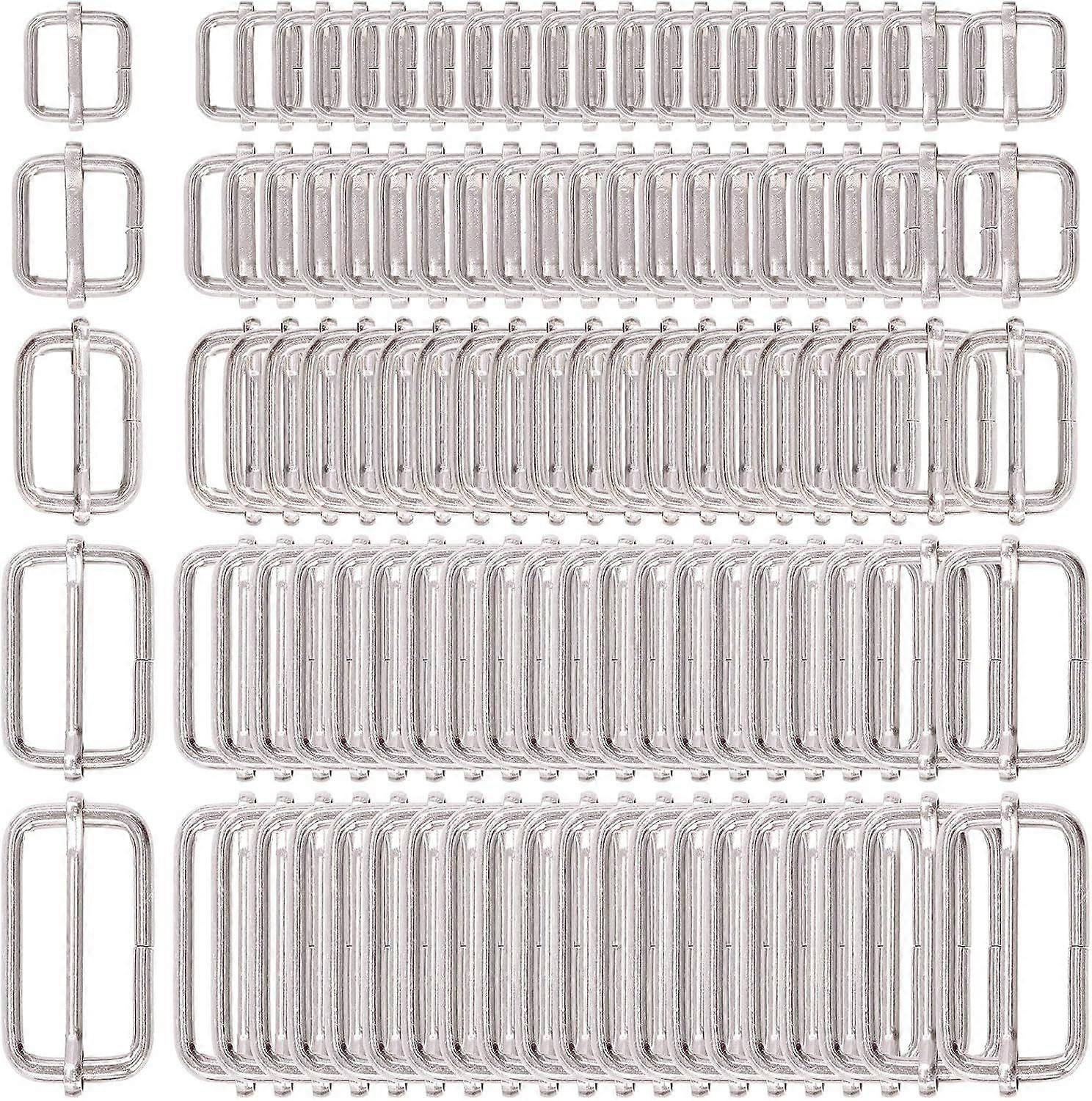 100 Pcs Metal Rectangle AdjusterSlides Buckle, Roller Pin Buckles Slider Strap