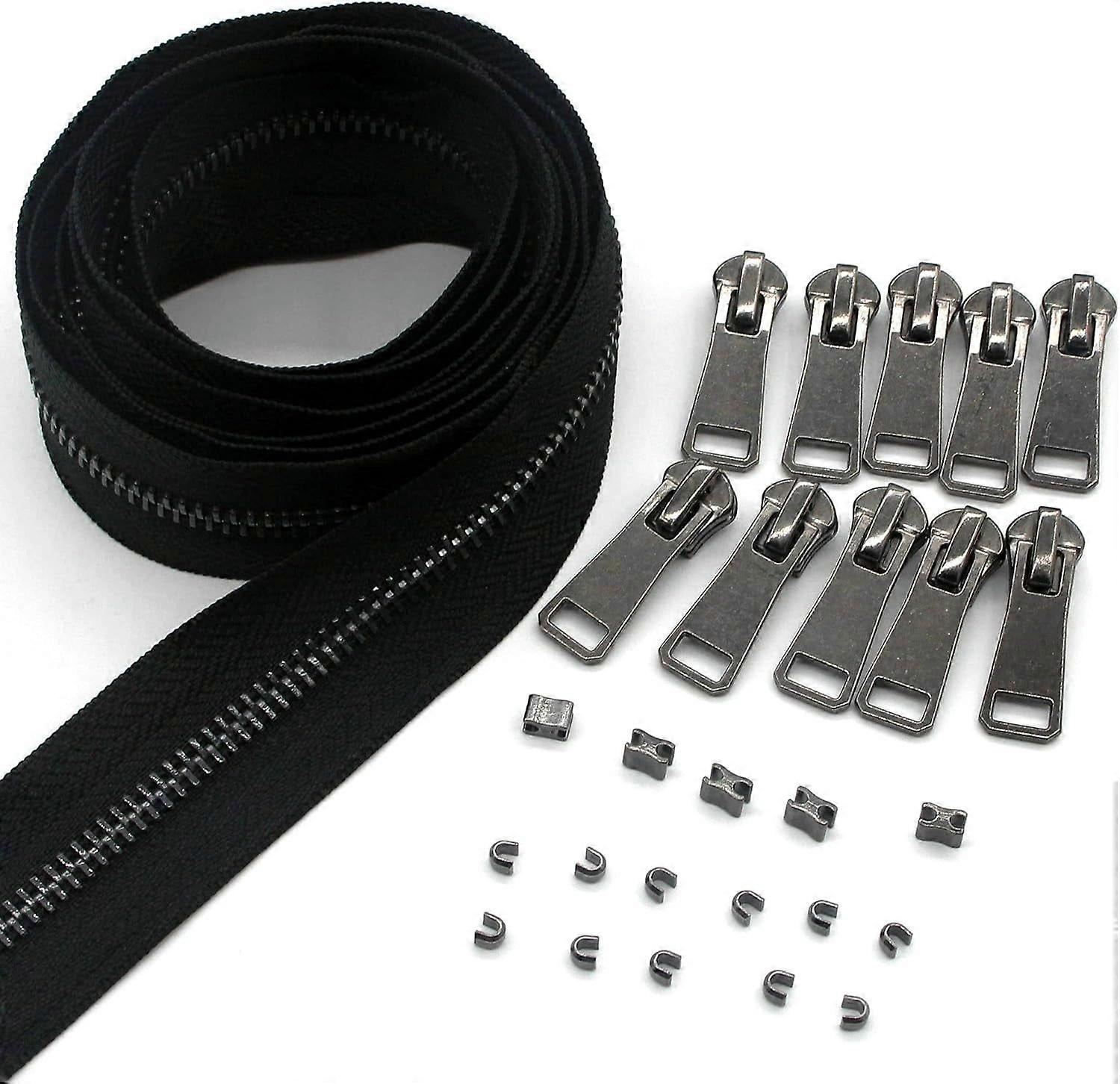 #5 Metal Zippers by Bulk 2 Yards Black Tape with 10 pcs Sliders Black Nickel