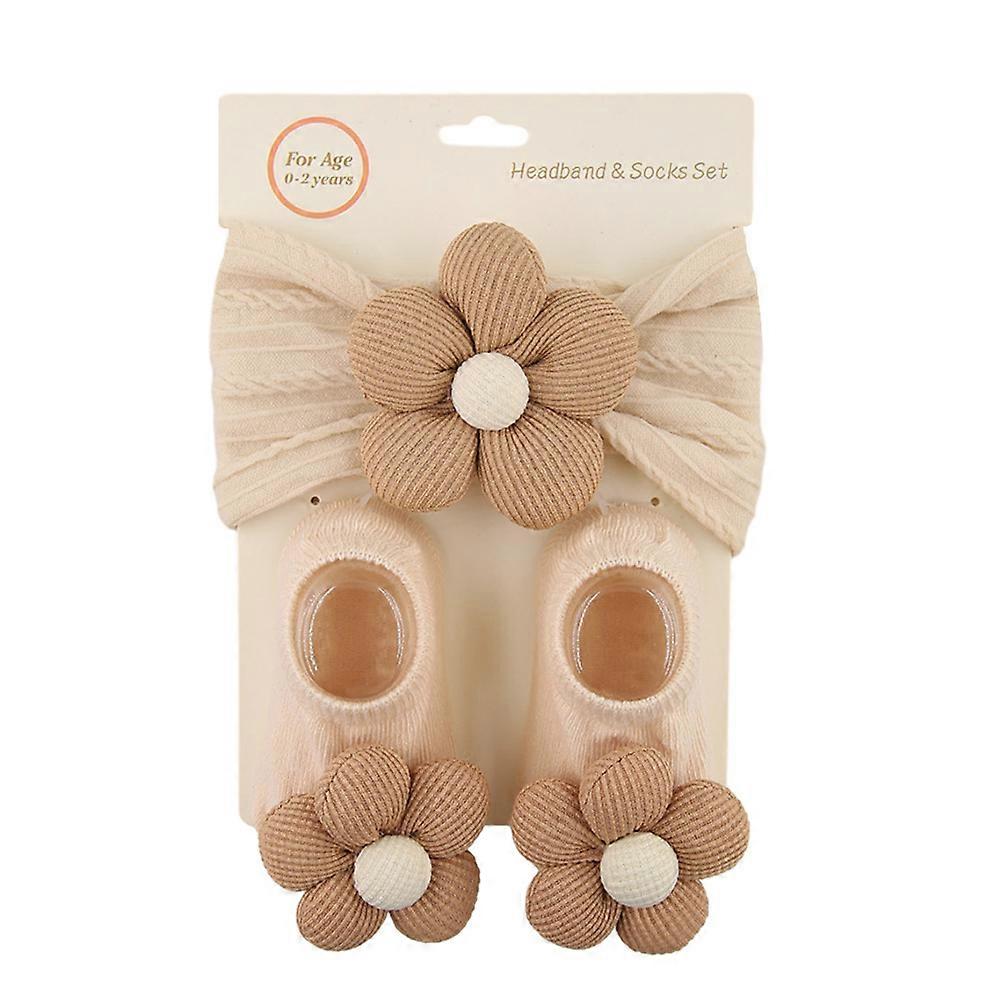 2Pcs/Set Ins Cream Latte Flower Headbands with Ribbed Socks for Baby Girls Boutique Flower Anti-Slip Short Cotton 0-12M Sock