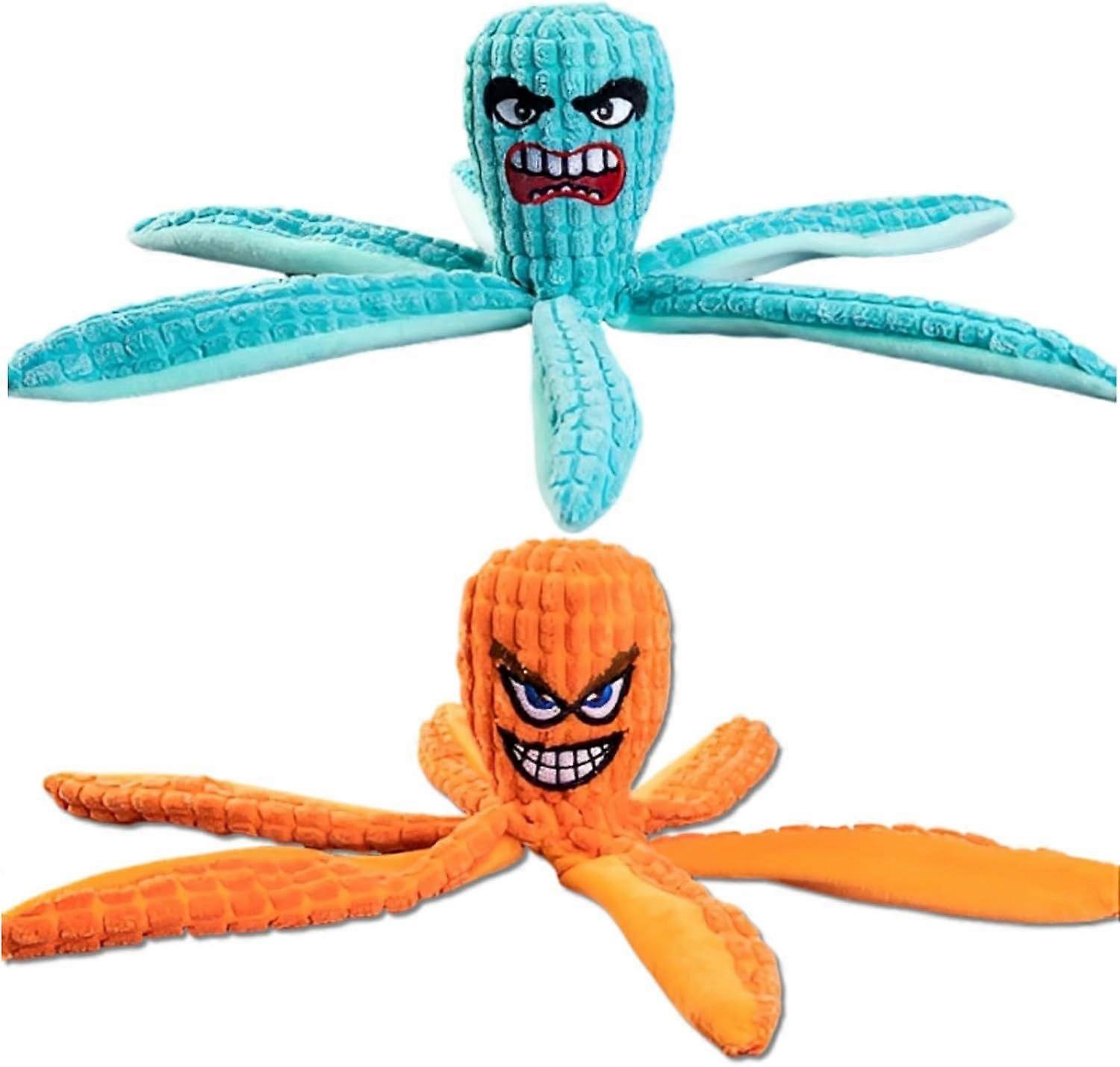 2 Pack Dog Squeaky Toys Octopus, Large No Stuffing Crinkle Plush, Durable Tear-Resistant Dog Chewing Toy for Puppies & Small Medium Large Breeds, Cute