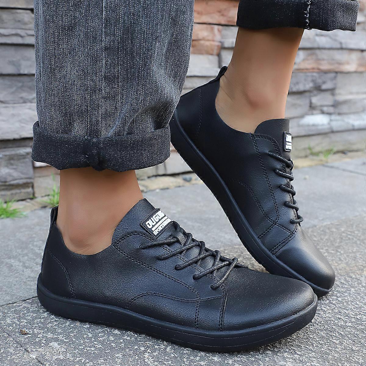 Men's athletic shoes, plcom size, leather, solid color, breathable, lightweight, comfortable, flat, non-slip running shoes.