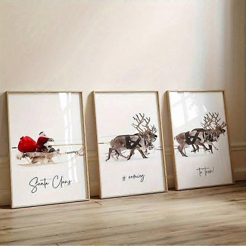 3pcs Set Frameless Canvas Poster Print Santa Claus Is Coming To Town Christmas Wall Art Painting For Living Room Bedroom Holiday Decor Xmas