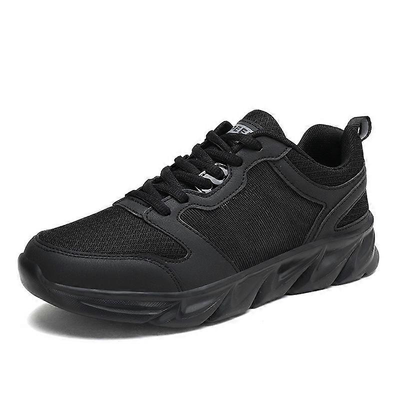 Black leather men's sneakers, lightweight, trendy, soft-soled, casual running shoes, thick-soled for students and boys.
