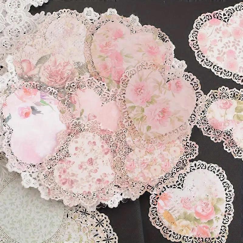 1pc, mixed color floral lace scrapbook set, vintage floral patterns, used for DIY handicrafts, cards, and photo albums