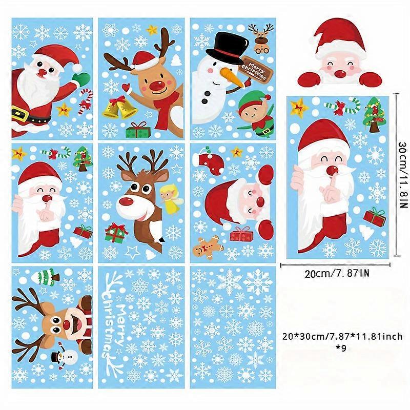 9 Sheets Christmas Window Clings Christmas Window Decorations Xmas Window Flakes Christmas Decals for Home Deer Santa