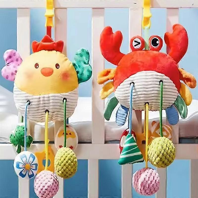 Baby Sensory Toys 0-6 Months - Crib & Car Seat Hanging Crab Attachment with Clip Rattles and Teether Toy for Newborn Infant Gift