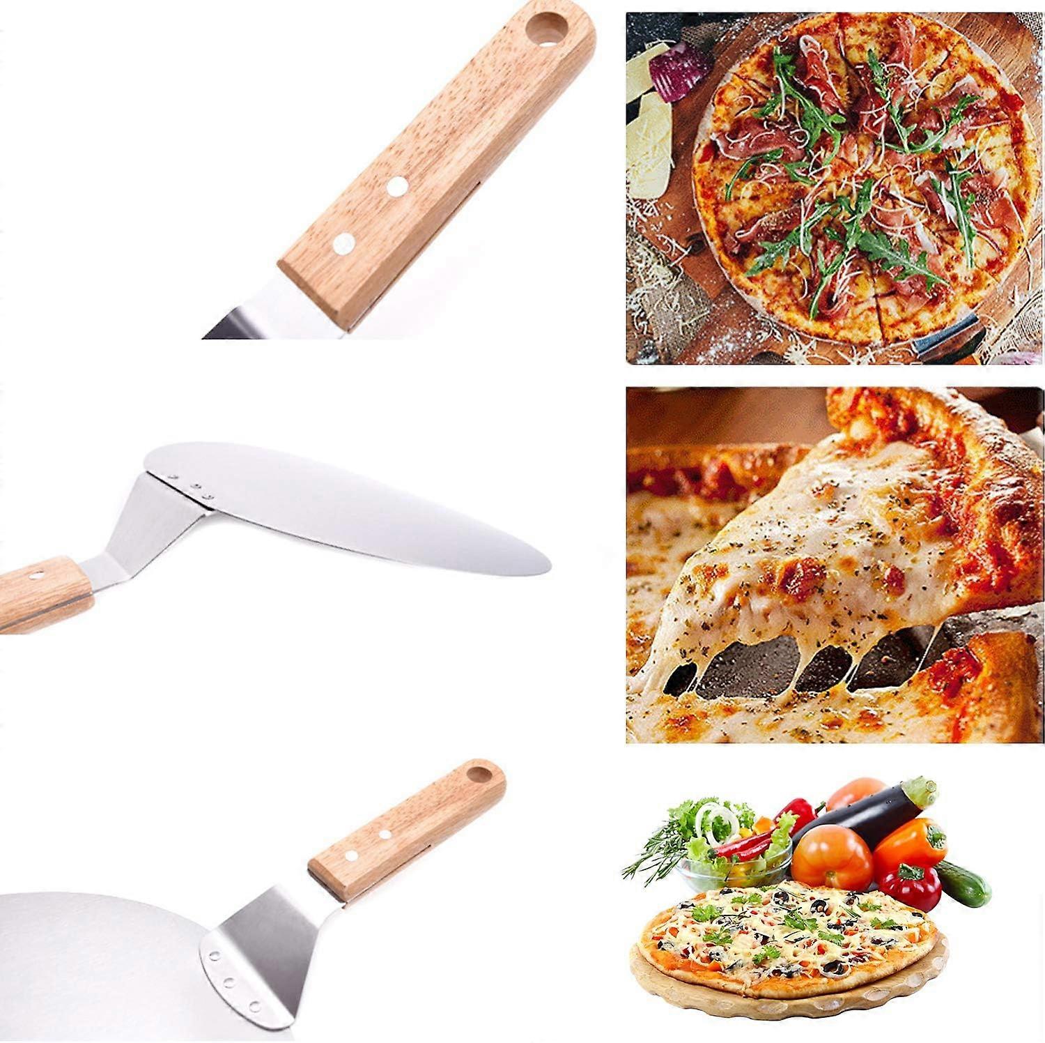 KSENDALO 10" Pizza Peel with Wooden Handle - Pizza Lifter & Stainless Steel Spatula for Baking, Serving Homemade Pizza, Cake and Pie | Non-Slip Pizza