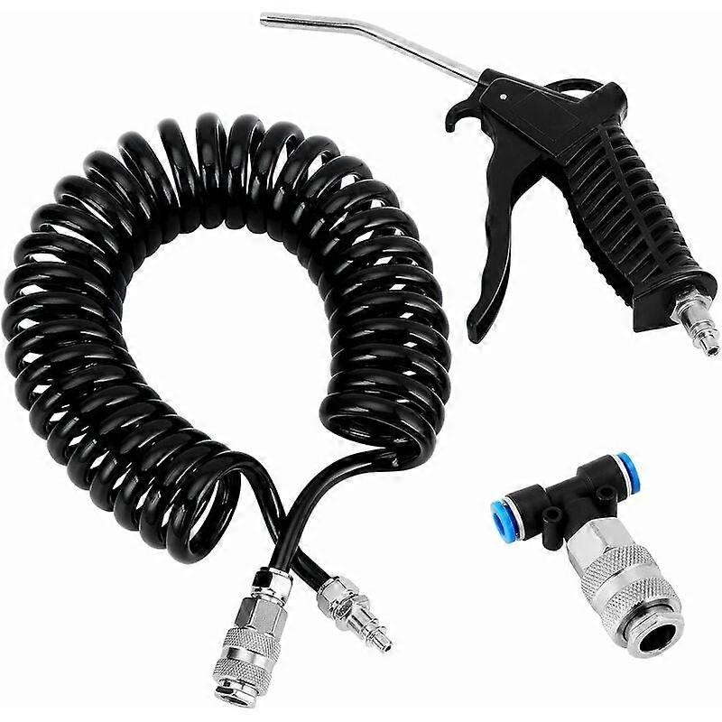Air Blow Gun kit with 16ft Long 8mm OD Coil PU Air Hose Air Duster Blow Gun Kit (Black)