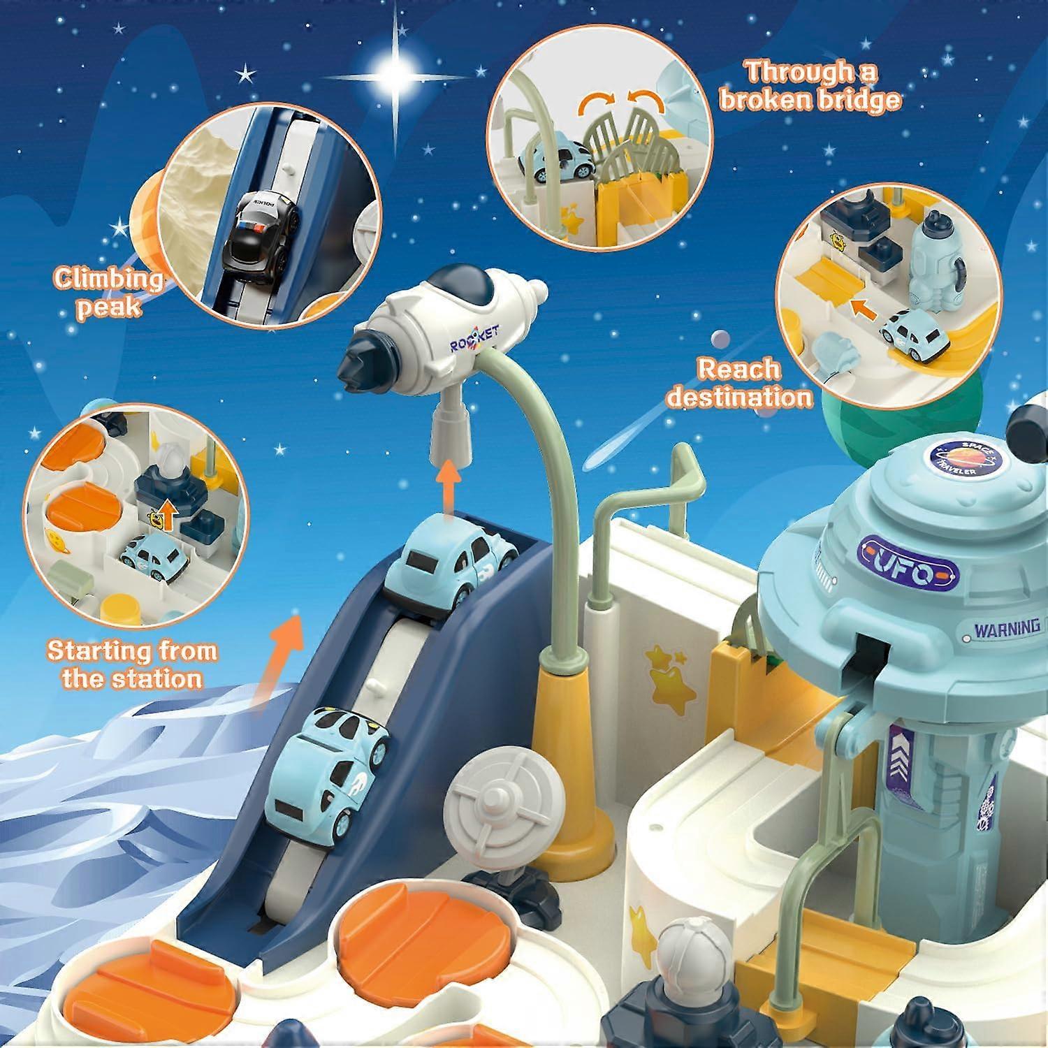 Fistone Kids Race Track Car Adventure Toy for Toddlers, Spaceship Puzzle Rail Track City Rescue Playset with 4 Mini Cars, Preschool Educational Car