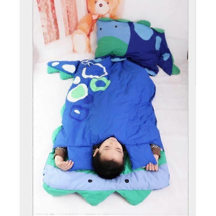 100% polyester fabric Imported 【Soft & Cozy Fabric】The dinosaur slumber sack is made with 100% soft and breathable polyester fibers, ensuring a cozy and restful nap spot for your little one. It serves as a warm and restful spot for kids to have a quick nap or relax. 【 2-in-1 Design】This slumber sack has a unique 2-in-1 design that allows it to be folded into a throw pillow. It can be used as a seating option for reading or watching TV. It's also an addition to your child's bedroom, playroom, or living room. 【Portable Design】Roll it, Carry it or Store it. The nap mat comes with easy-to-carry straps to store. It measures 54"*27*1". The size is perfect for kids aged 3 to 6 at preschool, daycare, kindergarten, and sleepovers parties. 【Machine Washable】Keeping the sleeping bag clean is a breeze! Toss the slumber mat in the washing machine on a gentle cycle with cold water, then tumble dry on low heat. It is recommended to use mild detergent only and avoid bleach. 【Warm Gift Choice】It would be a warm gift option for boys and dinosaur lovers. Suitable for Christmas, Birthdays, Children's Day. This dino slumber sack is sure to be the center of attention at the next sleepover, take your child's bedtime adventure anywhere!