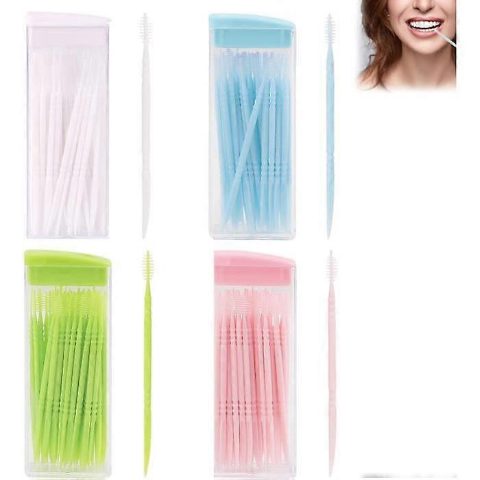 200Pcs Double Head Plastic Toothpick - 50pcs/Box Dental Floss Interdental Brush Teeth Stick
