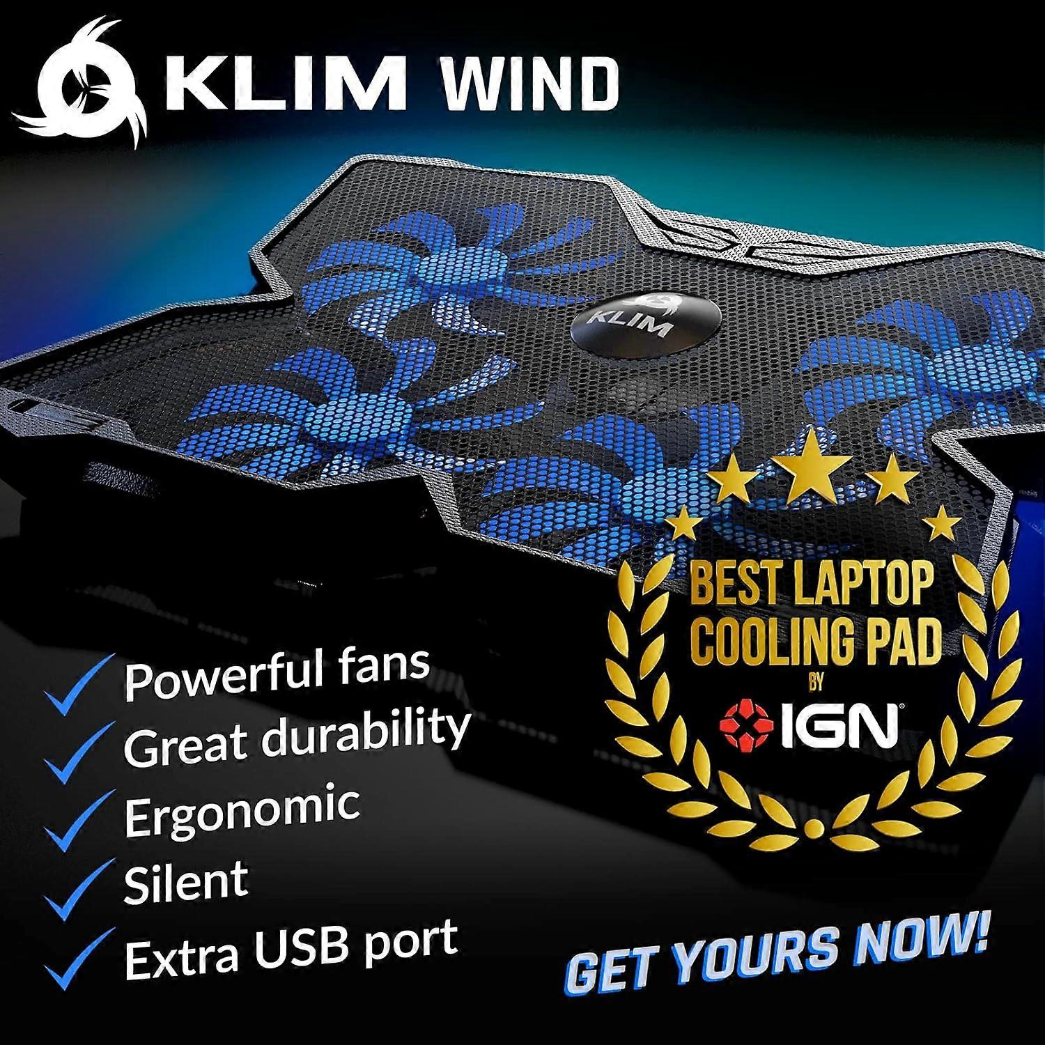 KLIM Wind Laptop Cooling Pad - More Than 500 000 Units Sold - Version - Rapid Action Cooling Fan - Laptop Stand with 4 Cooling Fans at 1200 RPM - USB