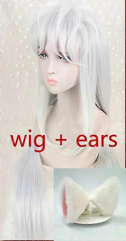 Inuyasha 100cm Long White Styled Sesshoumaru Cosplay Wig With Ears Heat Resistant Hair Cosplay Wig + Free Wig Cap