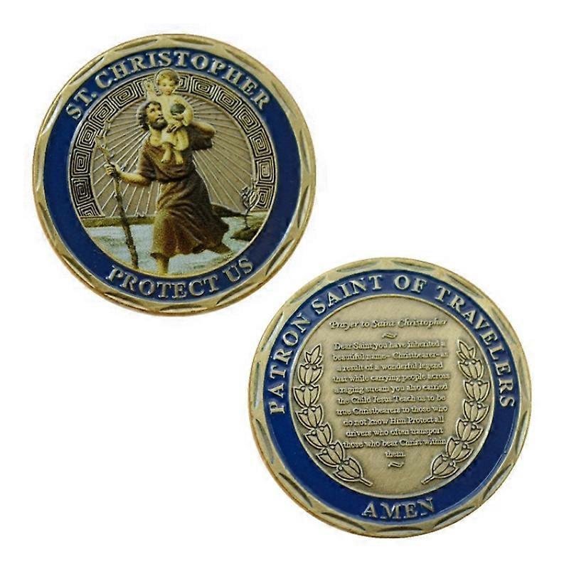 St. Christopher Collectible Metal Badge | Colorful Enamel Relief Design | Religious Souvenir Medals for Global Collectors