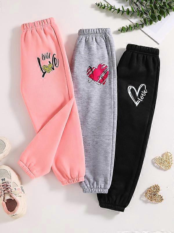 Girl's Letter & Heart Print Elastic Waist Sweatpants, Casual Comfy Trousers for Fall & Winter, Kids Bottoms for Daily Wear