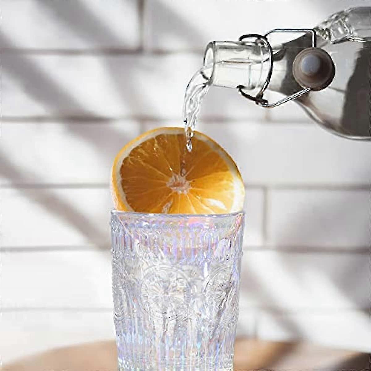 Iridescent Romantic Drinking Glasses Set of 6-300ml Embossed Water Glasses - Coloured Vintage Glassware Tumblers for Water Juice Cocktail