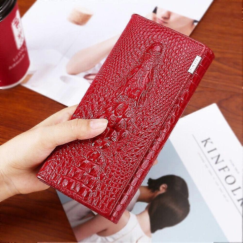 Men Women Embossed Crocodile Pattern Clutch Wallet Long Card Holder Purse(Red)