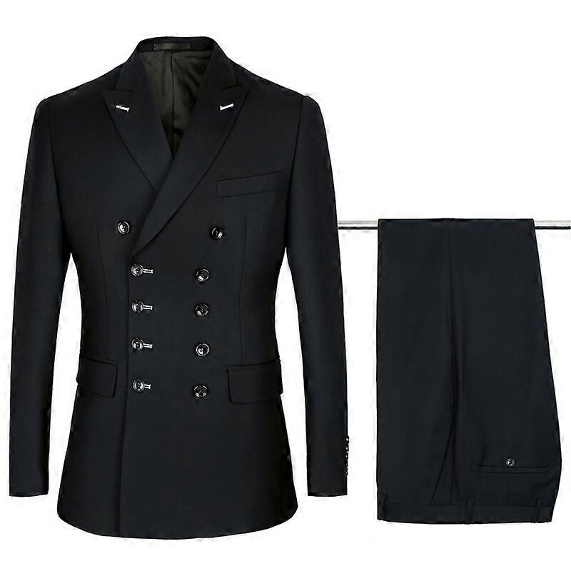 Mens Double Breasted Lapel Business Dress Formal Career Coat Pants Suits 2 Piece