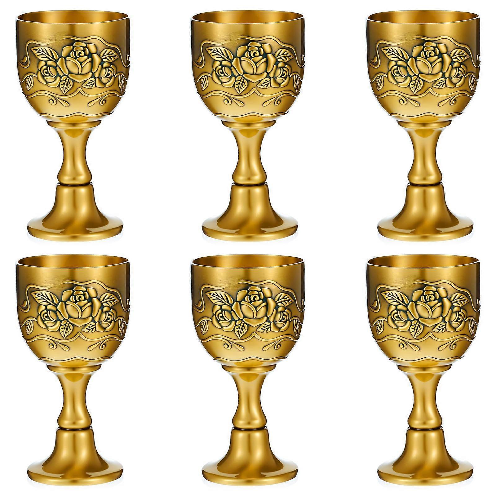 Set of 6 Mini Vintage Gold Goblets, Zinc Alloy Chalice Cups with Floral Embossing, 1oz Medieval Wine Glasses