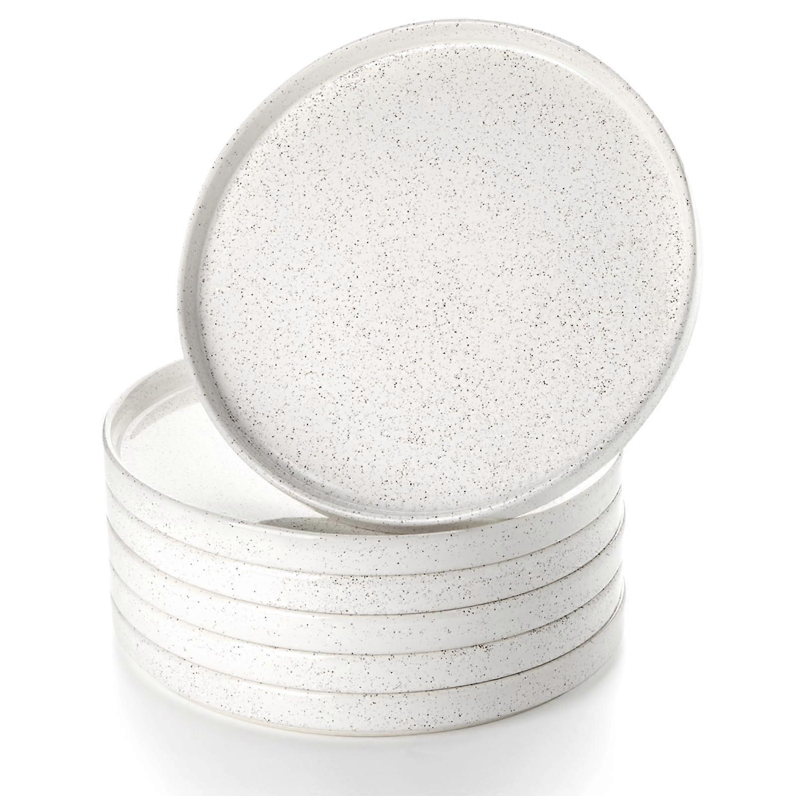 Ceramic Dinner Plates Set of 6, 10 Inch Scratch Resistant Microwave and Oven Safe Speckled White