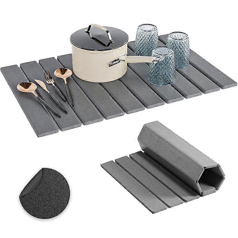 Large Stone Dish Drying Mat - 24" �� 16" Quick Dry Foldable Dish Drying Mats, Absorbent Diatomaceous Earth Drying Mat for Kitchen Counter