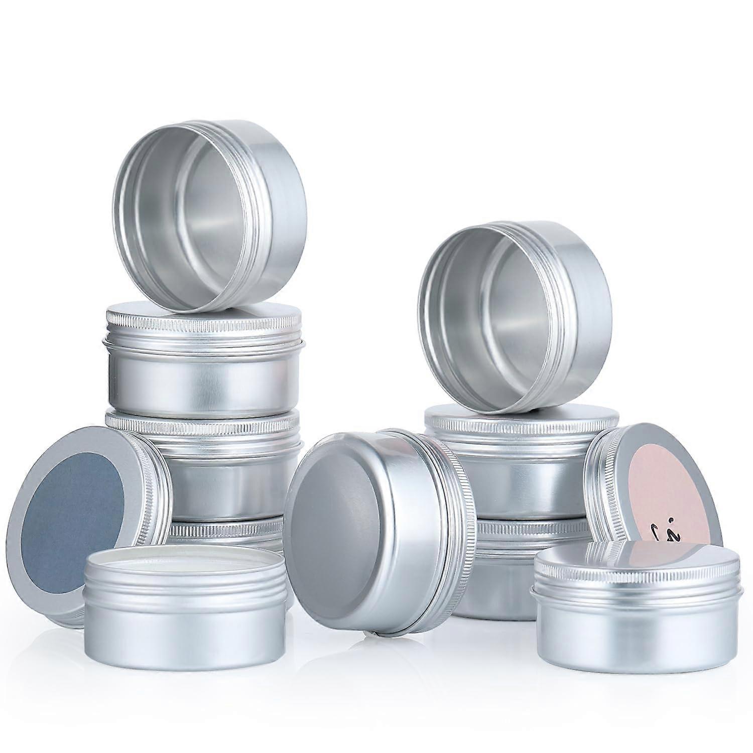 3 oz Aluminum Tin Cans with Screw Lids, 10 Pack Small Metal Storage Containers for Balms, Candles, Spices, Silver