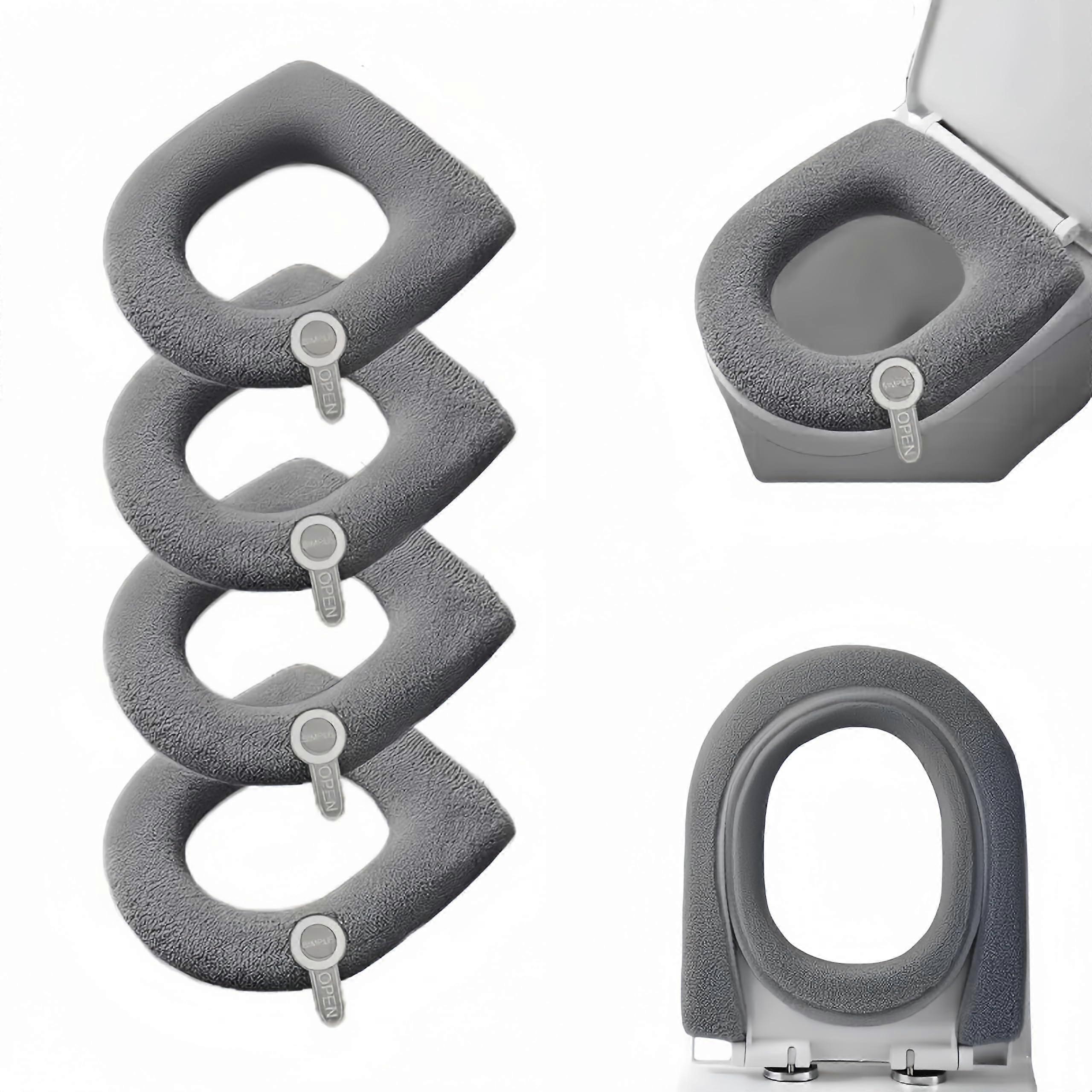 4Pack Washable Acrylic Toilet Seat Covers Winter Warmth, Universal Fit for Round and Elongated Toilets, Gray