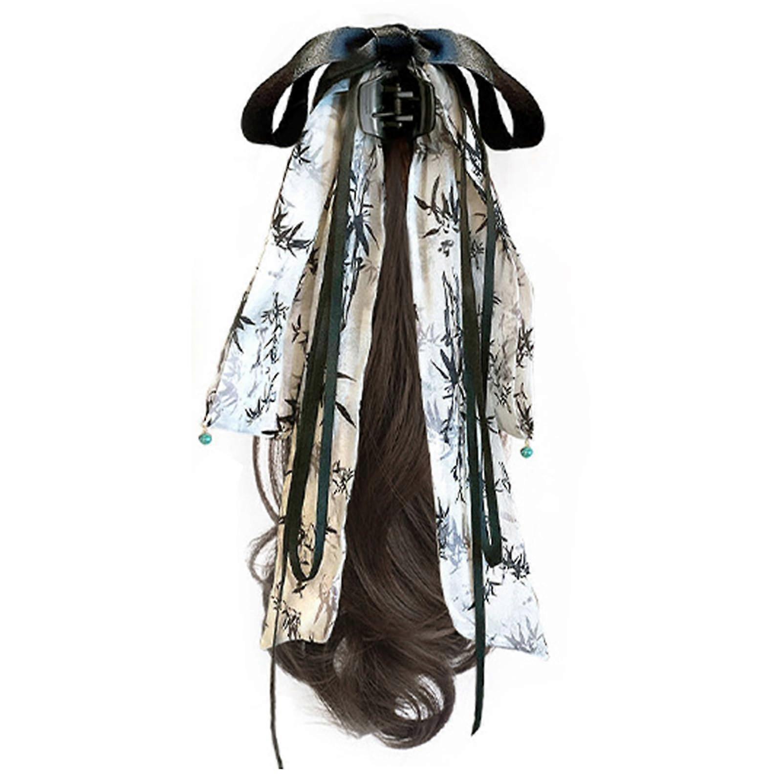 Ponytail Hair Extension Synthetic Hairpiece Brown Black Claw Clip Instant Volume for Women Cosplay