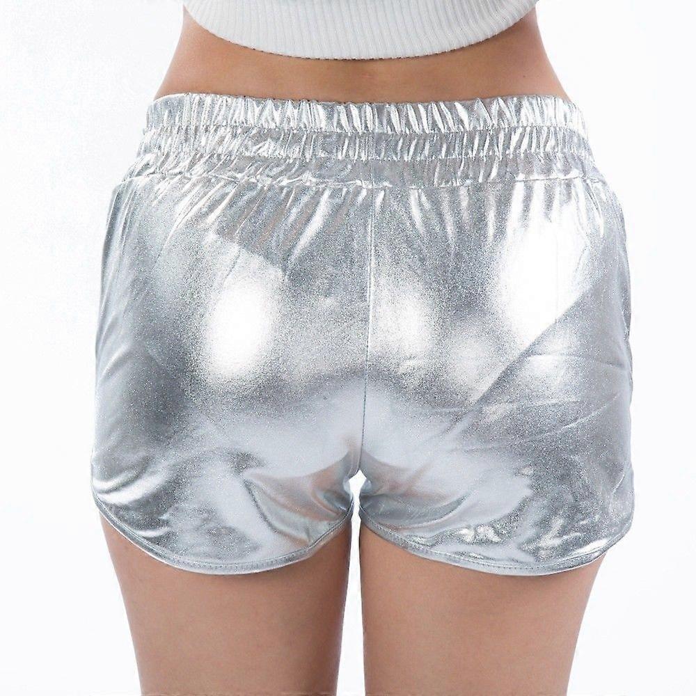 Lady Girl Sexy Metallic Shiny Shorts Mini Party Club PU Elastic Waist Dance Cute