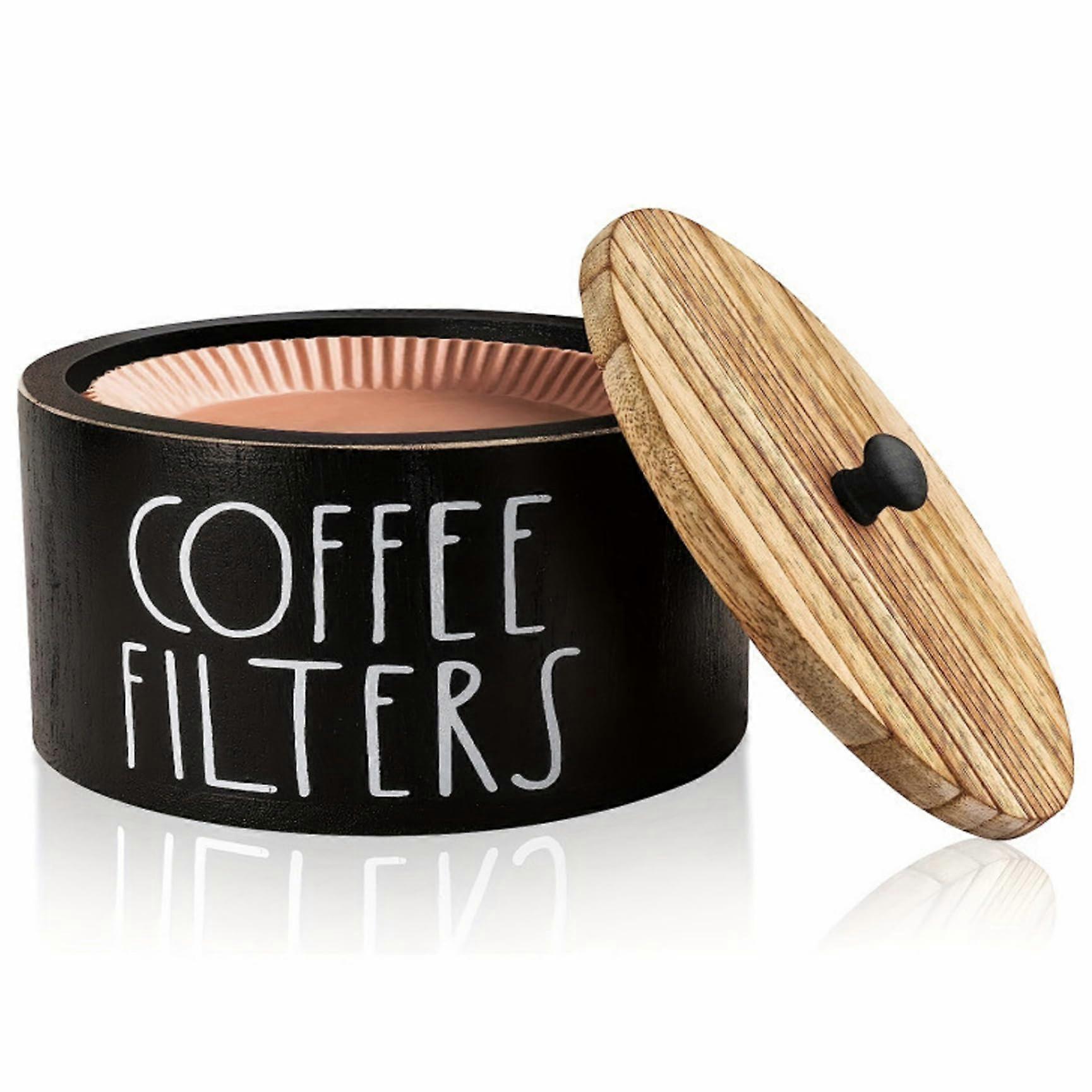Wooden Coffee Filter Holder with Lid, Black Filter Storage Organizer for Counter and Pods