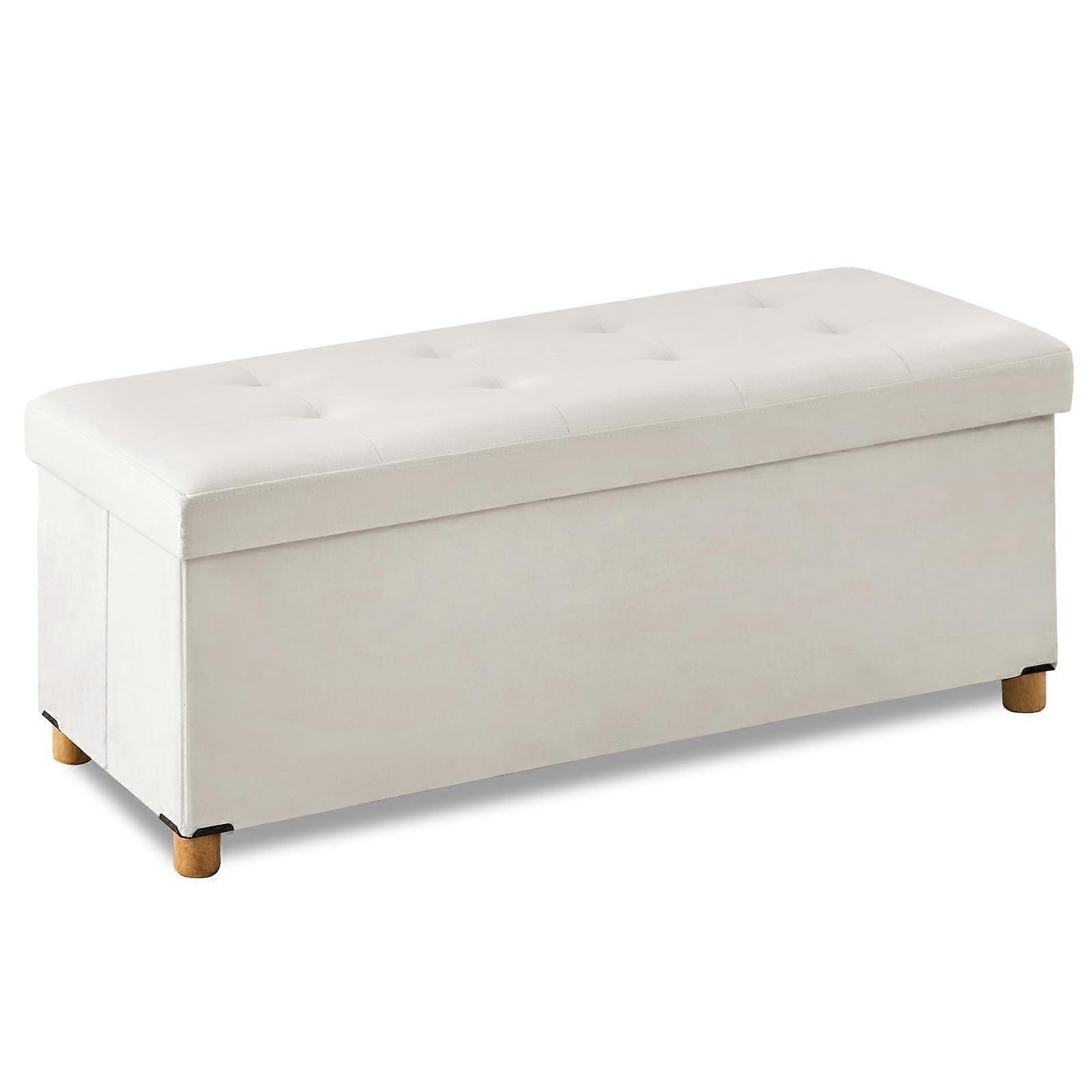 43 Inch White Folding Storage Ottoman Bench with Wooden Legs for Bedroom and Living Room