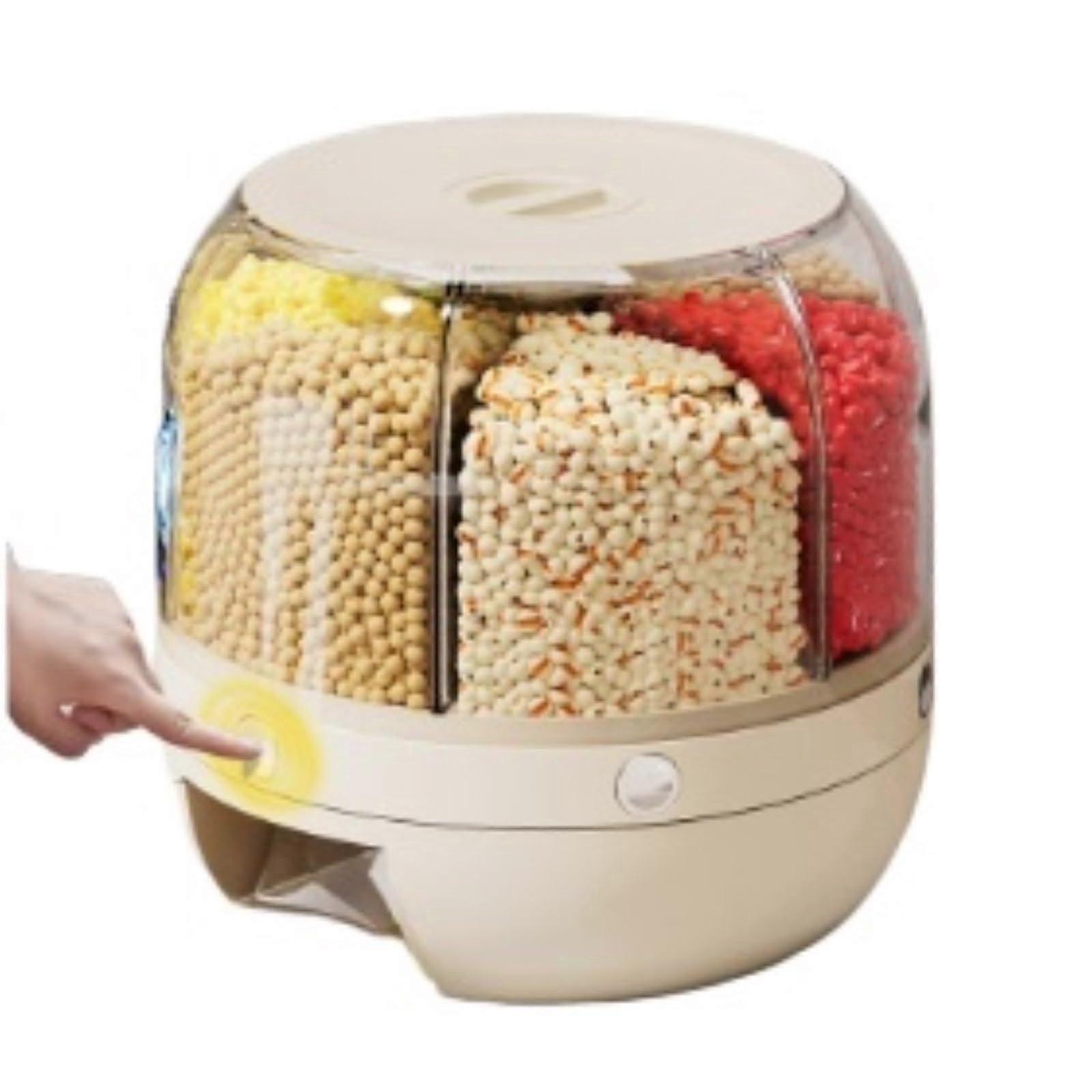 Cereal Dispenser 6Grid Rotating Rice Storage Container Moisture Proof Dry Food Organizer Beige