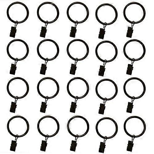 20 Pack 1 Inch Black Curtain Rings with Clips, Rustproof Metal Rod Rings for Drapes and Bows