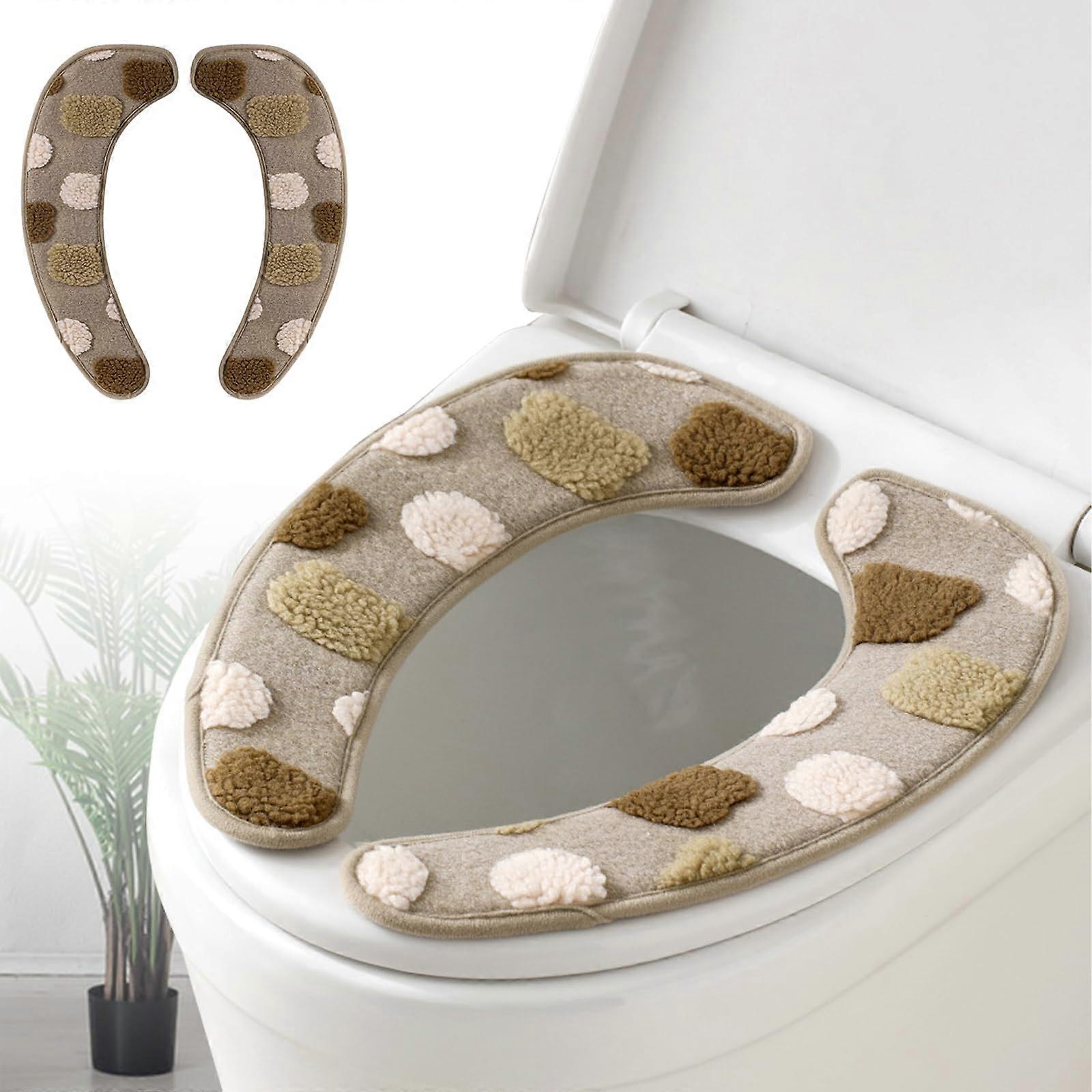 Thick Warm Toilet Seat Cover with Plush Comfort Cushion, Washable Reusable Design, Brown