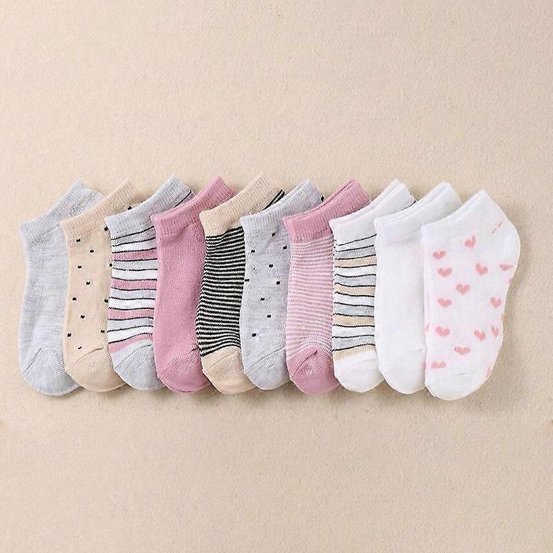 10 pairs adorable kid's socks - comfortable socks suitable for boys and girls, featuring stripes and heart-shaped patterns
