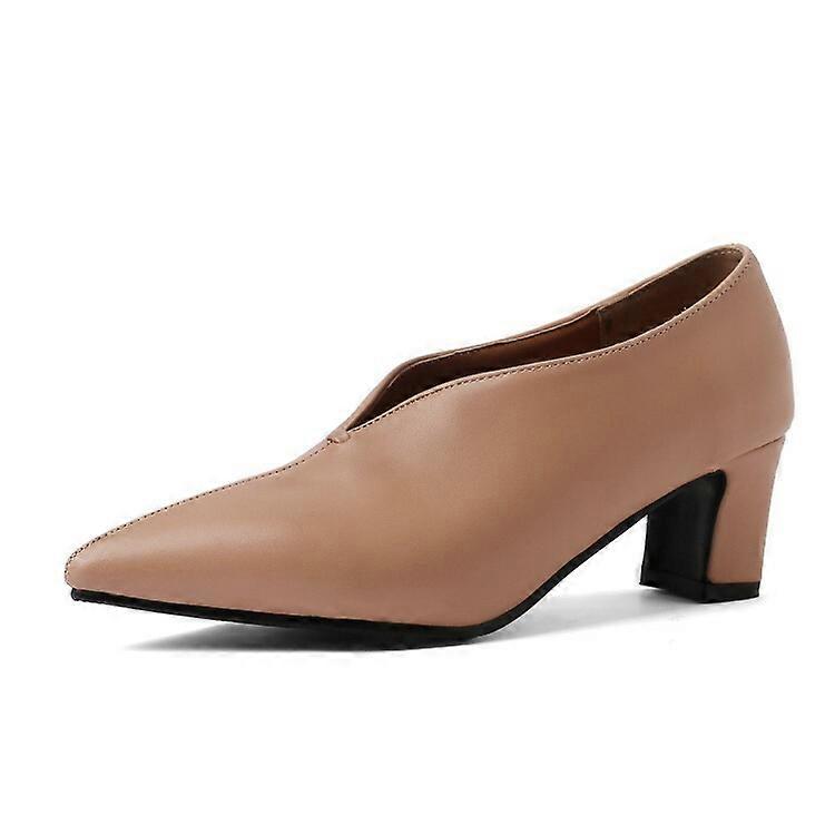 ELEGANT Women Pumps Pointed Toe Mid Chunky Heels Pumps Shoes Woman Big Size 3-14