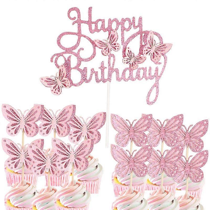 13pcs Glitter Butterfly Cake Toppers for Cupcakes & Birthday, Anniversary and Party Decorations, Butterfly Cake Decorations