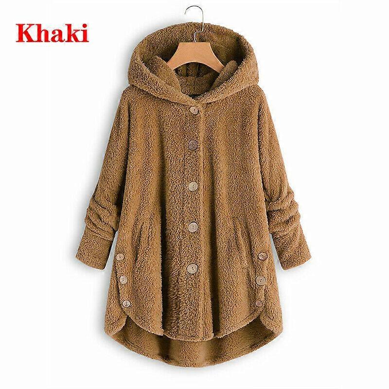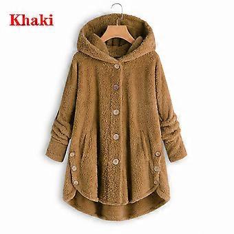 Women Outwear Plush Tops Coat Hooded Hoodie Button Fluffy Loose Fall Winter Warm