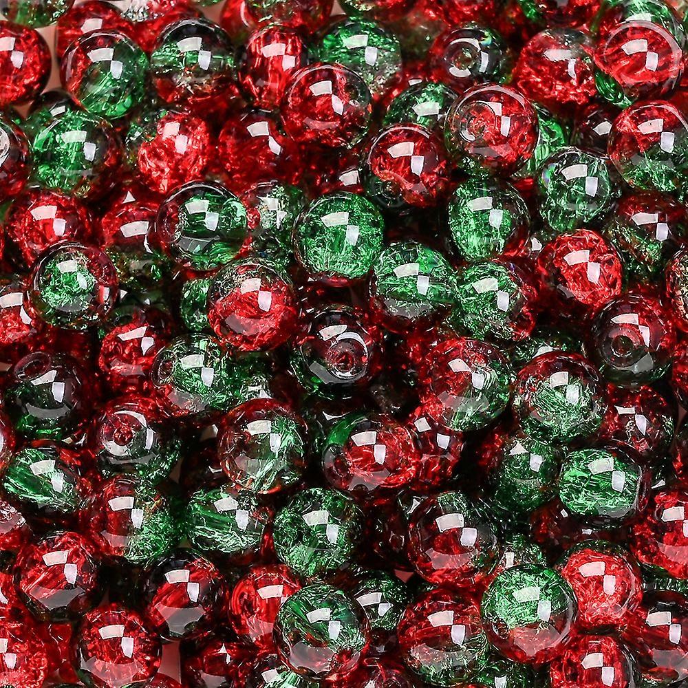 100pcs 8mm Christmas Crystal Glass Crack Beads Red and Green Gradient Spacer Beads for DIY Bracelet Necklace Jewelry Making