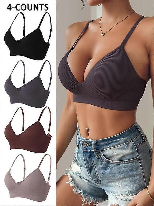 Women's Solid Color Push Up Wireless Bra, Casual Comfortable Breathable Adjustable Strap Four-breasted Bra, Basic Supportive Lingerie for Da