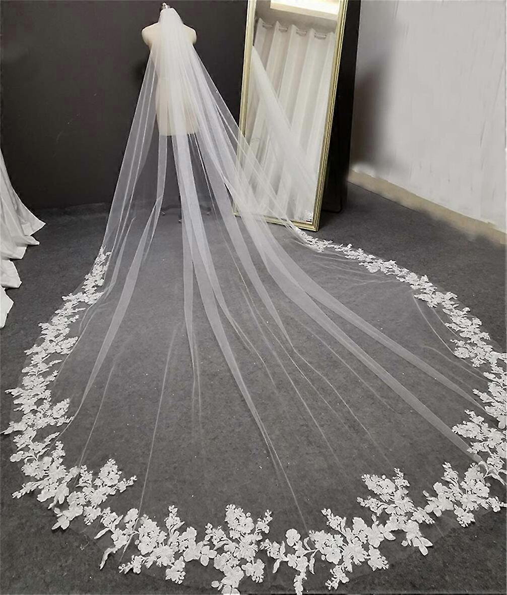 Long Lace White Ivory Cathedral Bridal Veils with Comb Wedding Accessories Bride