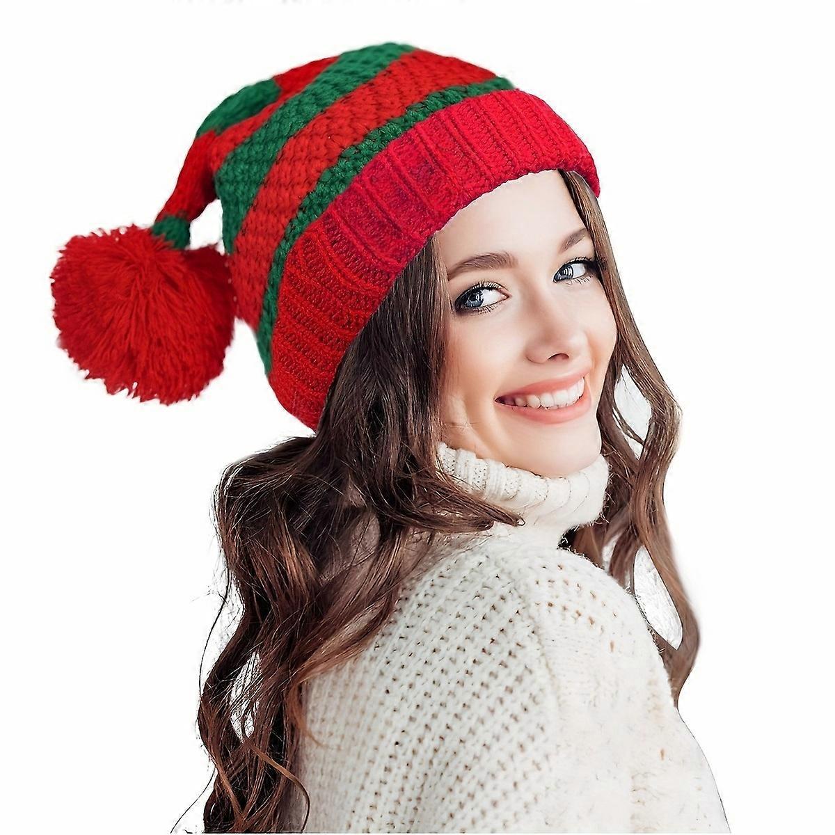 Christmas Hat Contrast Ball Party Cap Suitable for Xmas Parties Activities Knitted Santa Hats, Festive Headwear, Xmas Party Hat