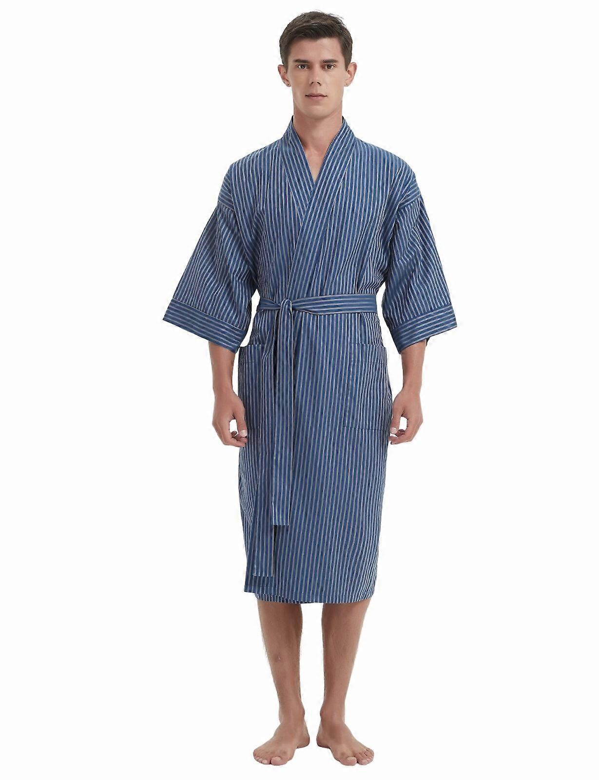 Condition:New without tags: This item is brand new and has never been worn, but doesn’t have tags and/or is ...<br>Pattern:Pinstripe<br>Sleeve Length:3/4 Sleeve<br>Closure:Tie<br>Neckline:V-Neck<br>Garment Care:Machine Washable<br>Material:100% Cotton<br>Fabric Type:Chambray<br>Brand:Unbranded<br>Department:Men<br>Type:Robe<br>Features:Belted, Lightweight<br>Season:Fall, Spring, Summer<br>Country/Region of Manufacture:China