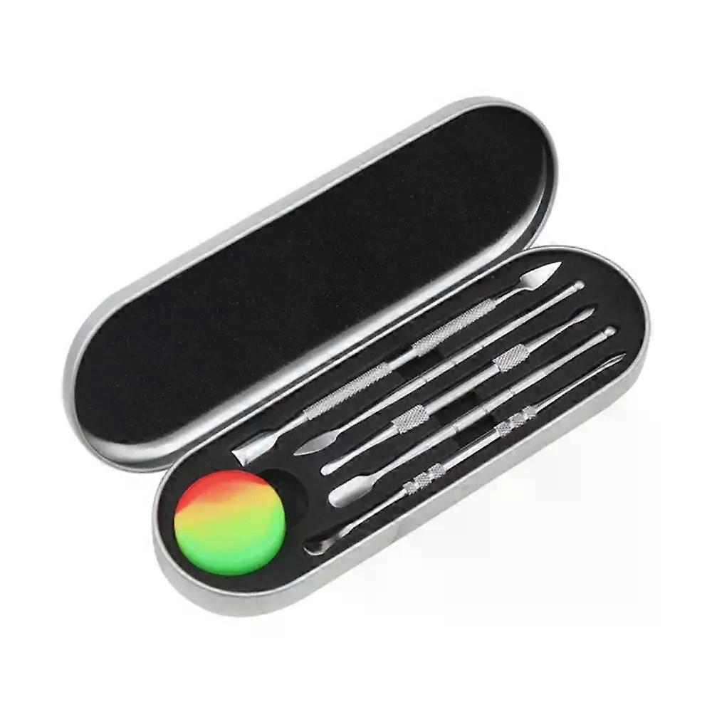 HAPPY Oil Wax Spoon Carving Tools Set Rainbow/Sliver Stainless Steel Tools Double-Headed With Silicone Wax Container